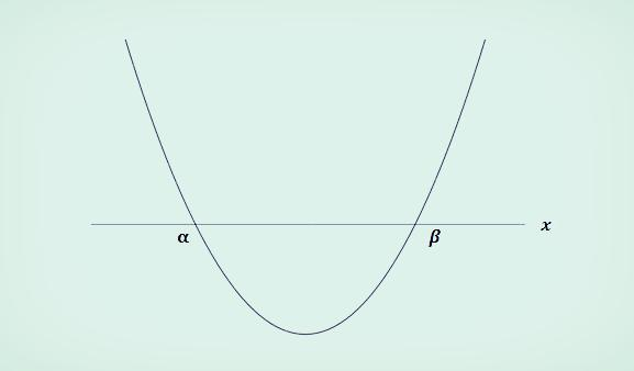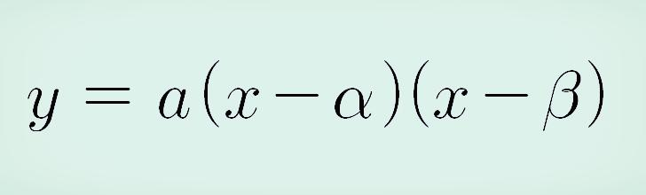 위의 이차함수가 x축에서 알파와 베타인 점에서 만난다는 말은 이 알파와 베타가 이차함수의 두 근이므로 위에 제시한 이차함수 일반식은 다음과 같이 쓸 수 있습니다.