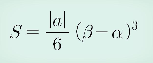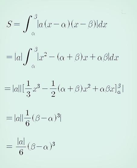 위 식을 유도해서 먼저 두 근이 알파와 베타이고, x축과 이차함수에 둘러싸인 부분의 넓이를 먼저 구해보겠습니다.