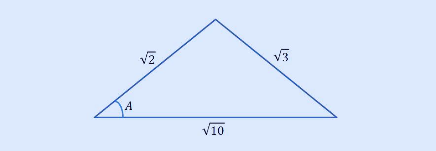 *한 변의 길이가 각각 루트 2, 루트 3, 루트 10인 아래와 같은 삼각형이 있을 때, cosA의 값을 구하시오.