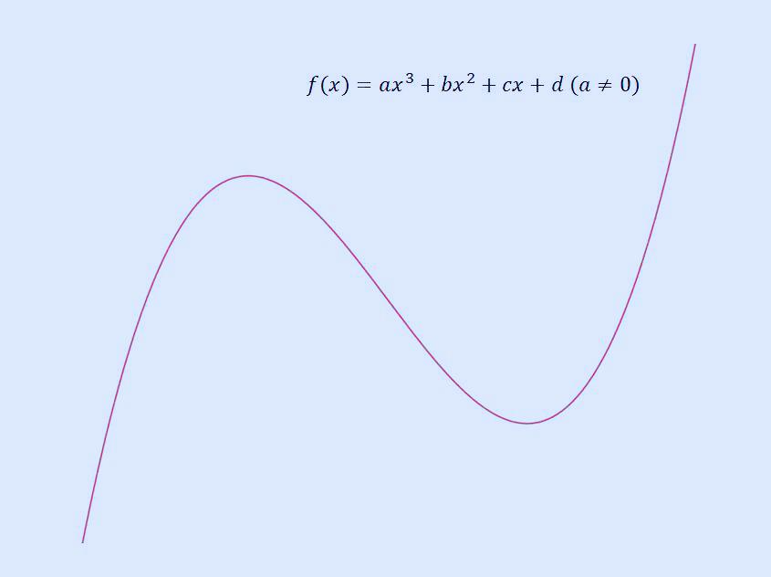 극댓값과 극솟값을 가지는 일반적인 삼차 함수가 있다고 가정해 보겠습니다.