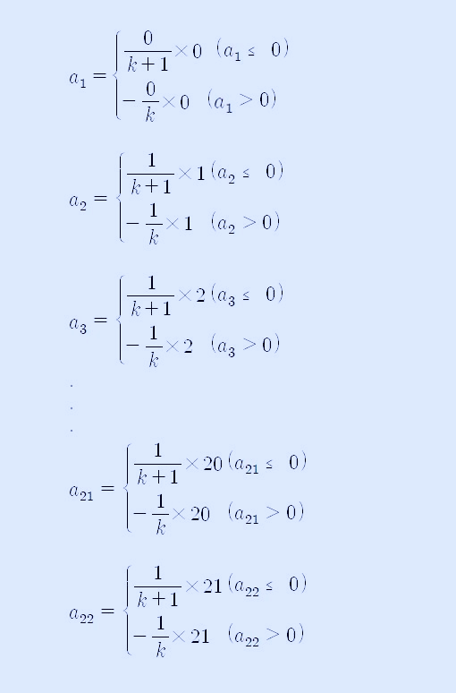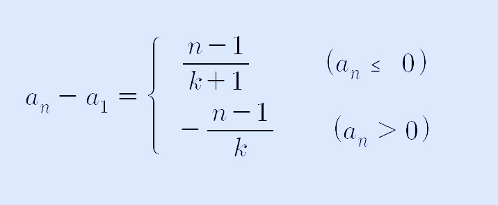위 수열 {an}은 n+1항에서 n항을 뺀 값이 n항이 0보다 작거난 같으면 1/k+1을 계산하고, n항이 0보다 크면 -1/k을 계산하라는 의미로 볼 수 있습니다. 또한, 위 식은 이 등차수열이 되는데, 공차가 각각 1/k+1, -1/k이므로 수열의 점화식을 정리하면 이 수열의 일반항은 다음과 같이 쓸 수 있습니다.