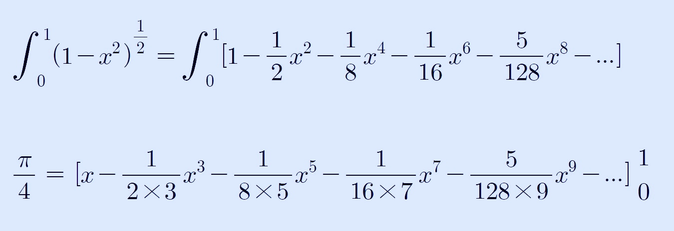 이 3.14...를 구하는 방법은 여러 가지가 있지만, 이 글에서는 고등학교 때 배우는 "이항정리", "적분"의 개념과 그 이전에 배웠을 원의 넓이 구하는 방법을 통해서 알아보고자 합니다.